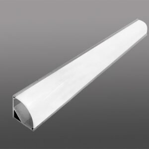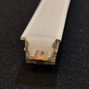 Perfil embutido assimétrico, em alumínio e acrílico, com pintura eletrostática.