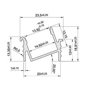 PF0166, PF0167 – PERFIL DE EMBUTIR ASSIMÉTRICO SLIM