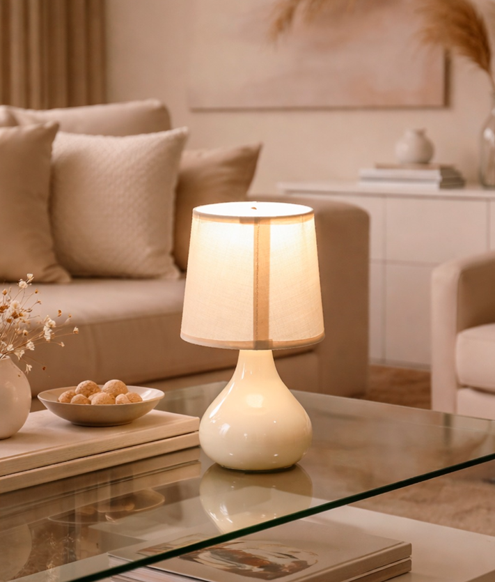 Abajur Sfera Bege – Iluminação Aconchegante com Design Moderno e Elegante